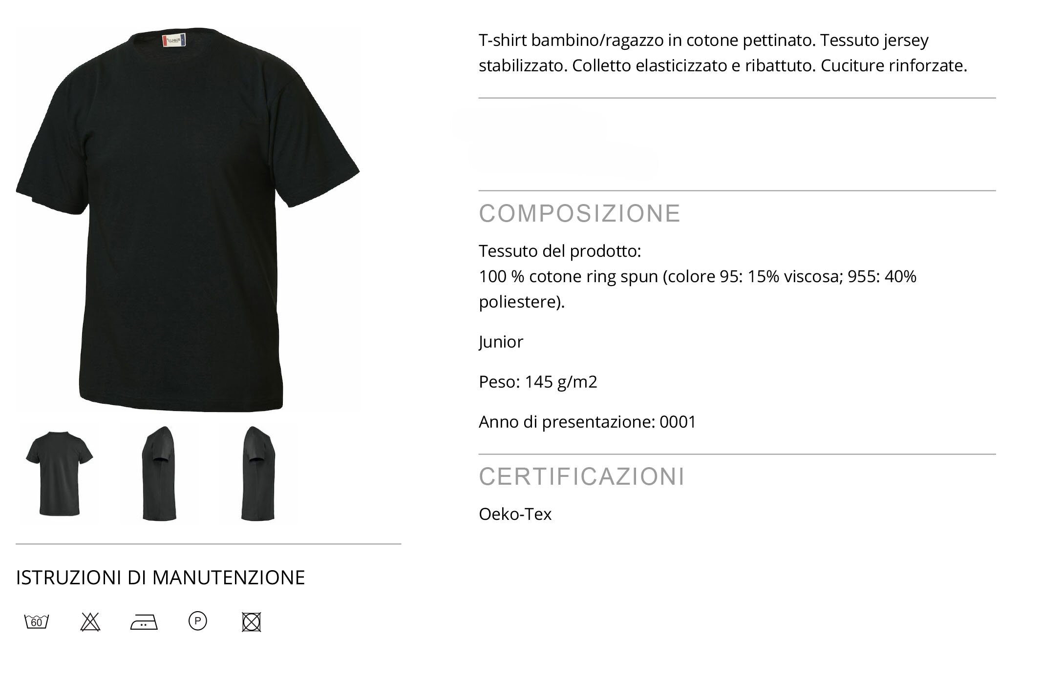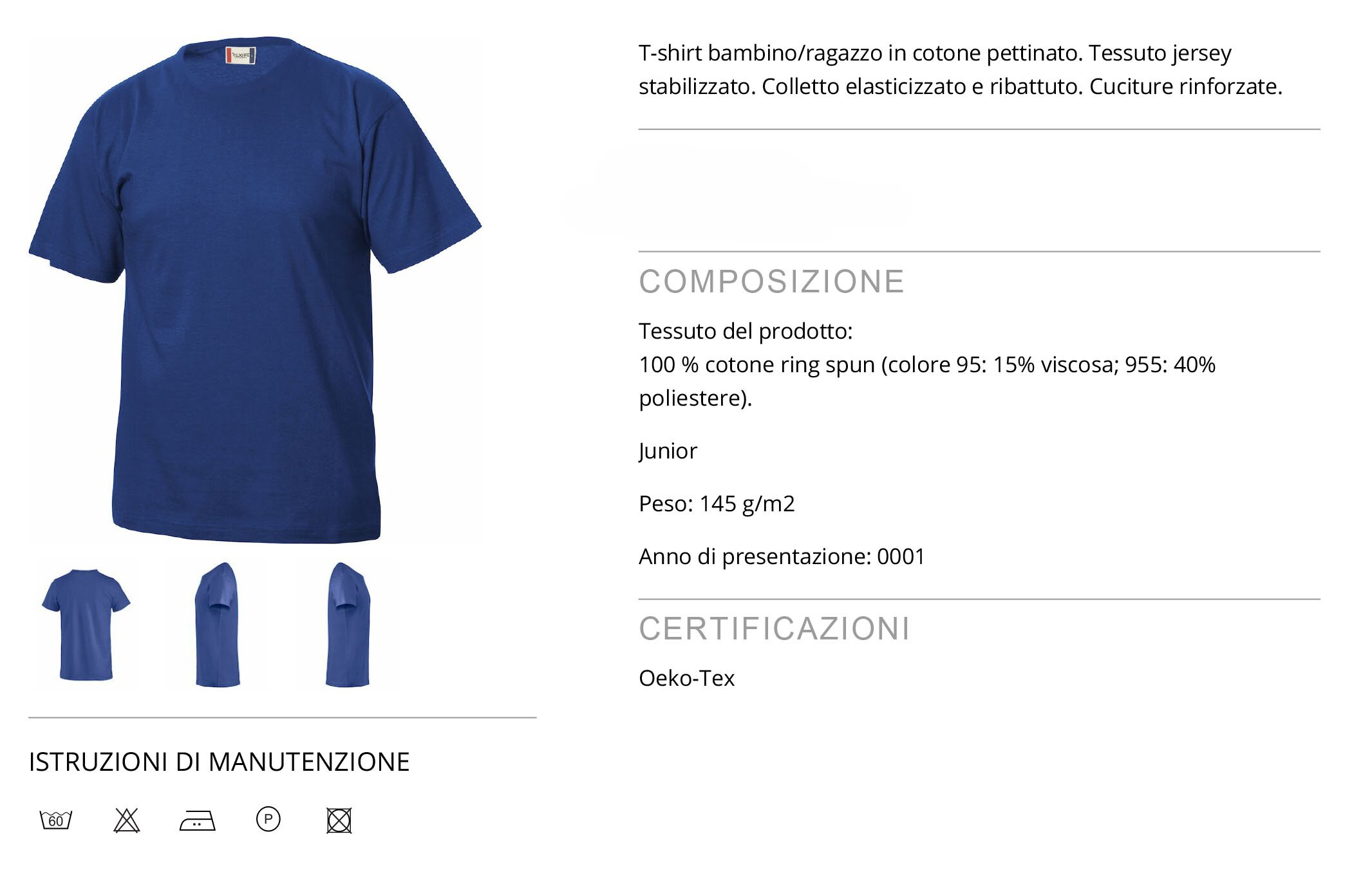 T-shirt bambino cotton-feeling. Tessuto mordibissimo ideale per stampa sublimatica. Nastrino parasudore. Colletto elasticizzato ribattuto.